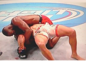 A luta – Jon Jones não pensou duas vezes antes de jogar no fácil. Com poucos segundos, colocou Vitor para baixo e começou aplicar seu clássico jogo de cotoveladas no ground-and-pound, que machucou muito o rosto do brasileiro. Belfort ainda teve um bom momento em uma tentativa de chave de braço que o americano escapou.