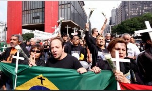 Os manifestantes vestiram de preto e carregaram cruzes brancas, lembrando os mais de 90 policiais que morreram em todo o estado. De acordo com a passeata, seguiu em direção ao Cemitério do Araçá onde as cruzes foram depositadas.