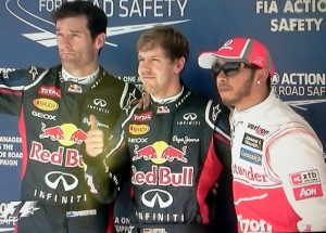 Vettel garantiu a pole na tarde deste sábado com uma marca de 1min35s657. Pior para Fernando Alonso, que mais uma vez não conseguiu andar no mesmo nível que o alemão da Red Bull. O espanhol ficou apenas com a nona marca, com um decepcionante 1min37s300 – quase 2s a mais em relação ao tempo do rival. Alonso, porém, sairá do oitavo lugar, por conta de uma punição imposta ao francês Romain Grosjean, da Lotus, em decorrência de uma troca de câmbio.