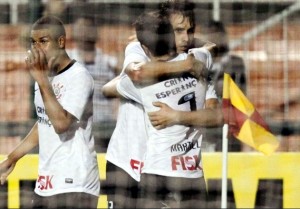 O Time do Parque São Jorge marcou no último minuto do primeiro tempo e quase ampliou no primeiro lance do segundo. Douglas foi lançado na esquerda, invadiu a área e cruzou. A bola desviou na zaga gaúcha e bateu na trave.