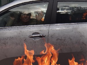 Helô é vítima de atentado e fica presa dentro de carro em chamas
