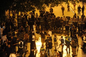 Enquanto a presidente Dilma Roussef, discursava para o papa Francisco dentro do Palácio Guanabara, dizendo que a juventude brasileira clamava por direitos sociais, um manifestante foi atingido nesta segunda-feira (22/07), na perna esquerda, por um projétil, por volta das 19h, durante confronto com a Polícia Militar (PM), naquelas proximidades. A informação foi divulgada pela Ordem dos Advogados do Brasil (OAB).