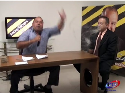 Apresentador de TV revoltado com buracos em ruas da cidade dá banho ao vivo em convidado