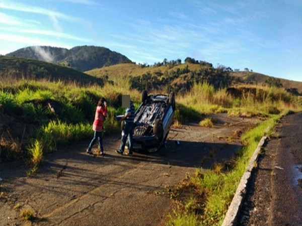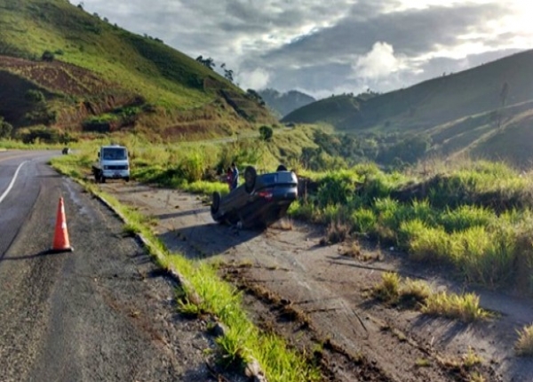 Carro capota com casal na BR-116 entre Muriaé e Miradouro