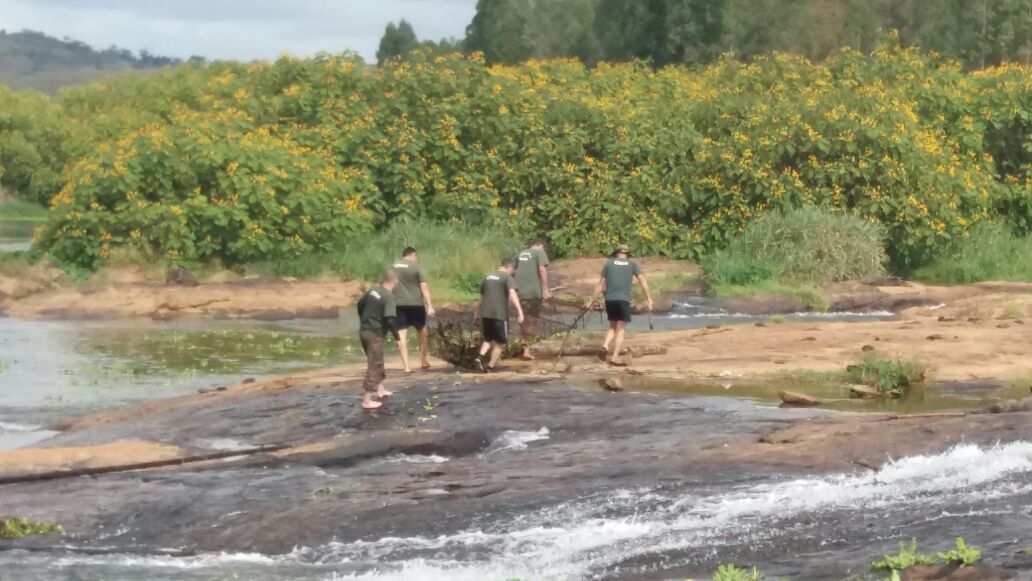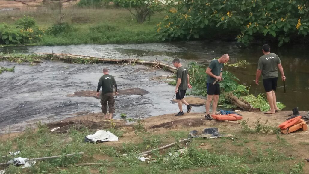 Unidade de Polícia Ambiental do Parque do Desengano limpam o Rio Muriaé das armadilhas de pesca predatória
