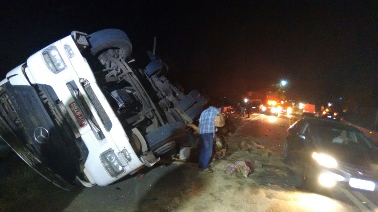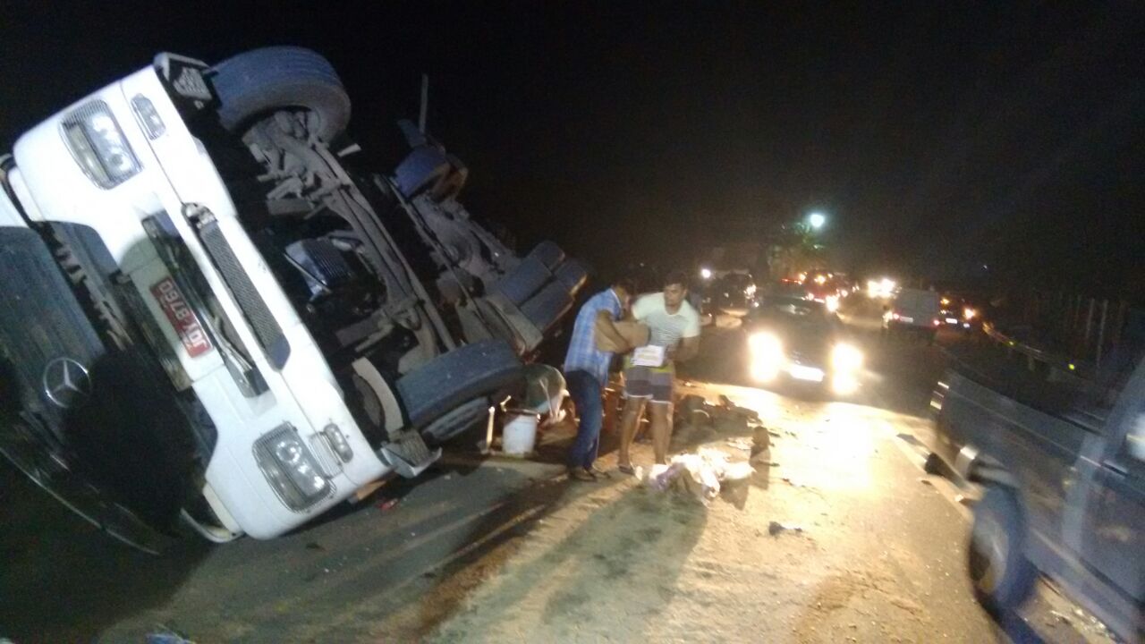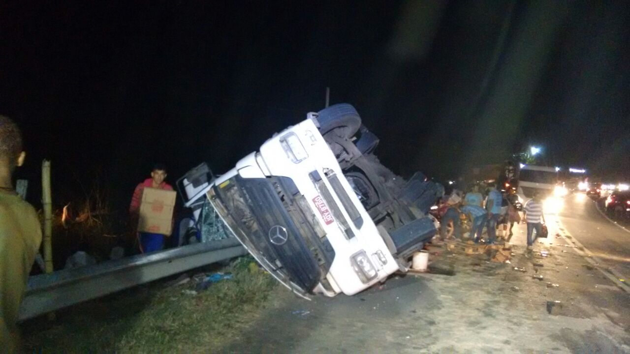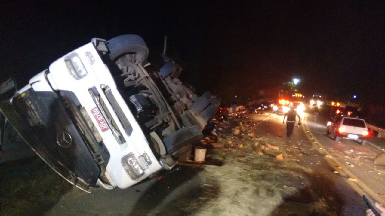 Um motorista ficou ferido gravemente em um acidente ocorrido na noite desta terça-feira (05) na BR-356 próximo ao Barra Vento, em Itaperuna, no Noroeste Fluminense. testemunhas declararam que o veículo ficou desgovernado quando a carga deslocou-se numa curva na Rodovia Federal. O veículo de carga chegou arrancar o guard rail que margeia a pista e tombou no derramando toda a carga no asfalto e por um despenhadeiro, ficando depositada no pasto de uma propriedade rural.