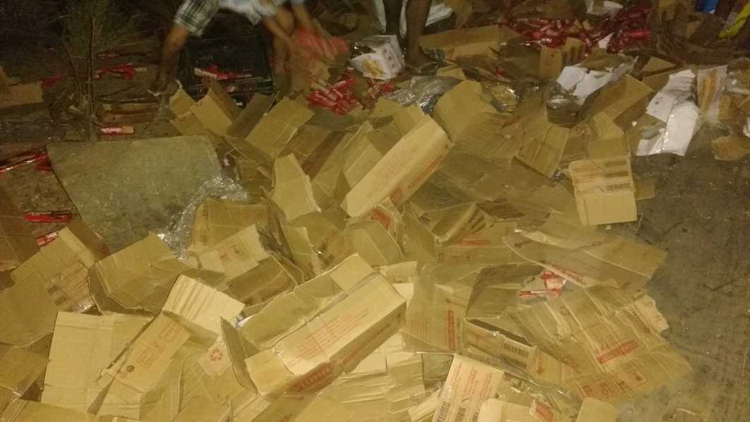 Carreta com 25 toneladas de biscoitos recheados tomba na BR-356 em Itaperuna e tem carga saqueada