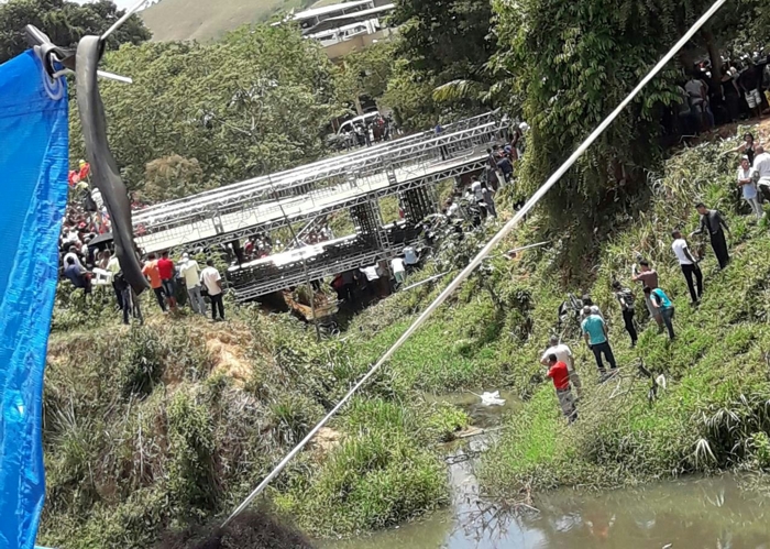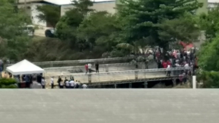 Em um vídeo divulgado nas redes sociais, um participante do evento mostra a grande concentração de pessoas em cima da ponte, em seguida parte da estrutura cede.