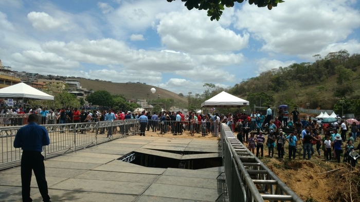 A estrutura de ponte por onde passavam os fieis cedeu e um idoso teria morrido e uma criança estaria gravemente ferida