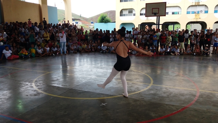 As turmas do 4º ano recitaram o poema As bailarinas, de Cecília Meireles, que, logo em seguida, contou com a apresentação dançante baseada no contexto da letra da música Ciranda da Bailarina. A apresentação da turma foi finalizada com a aluna Kaylane, do 7º ano, que encantou a todos com um espetáculo de balé contemporâneo.
