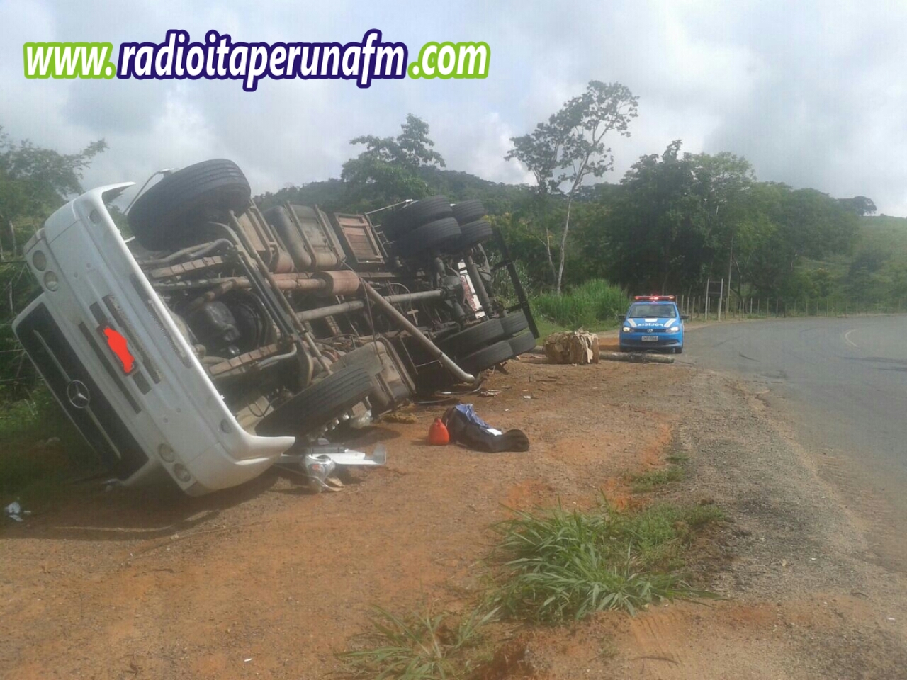 Na manhã desta terça-feira (20), Policiais Rodoviários Estaduais lotados no Posto 18 foram foram acionados para atender a um alerta de tombamento na RJ-186 km 32, na localidade de Ibitiguaçu, distrito de Santo Antônio de Pádua, envolvendo o caminhão M. Benz de cor branca, que era conduzido por R. G. N. de 36 anos, residente em Campos dos Goytacazes.