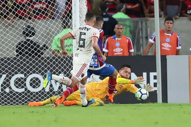 O Bahia passou a pressionar mais, precisando o resultado. Mas o Flamengo tinha Diego Alves. Sempre bem colocado, o camisa 1 fez duas belíssimas defesas em chutes seguidos de Zé Alves e Rafael, impedindo o gol tricolor. Em seguida, foi ovacionado pela Nação no Maracanã.