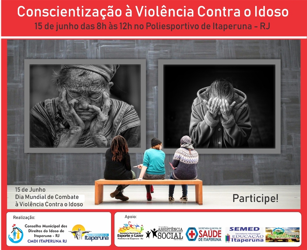 O Conselho Municipal dos direitos do Idoso de Itaperuna (CMDI) realiza um momento de reflexão sobre a violência contra o Idoso. O evento acontece nesta sexta-feira(15), das 8h às 12h, no ginásio do Centro Poliesportivo, Bairro Cidade Nova, com palestras, dinâmicas, apresentações culturais, roda de troca de experiências e muito mais.