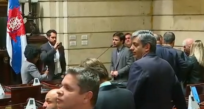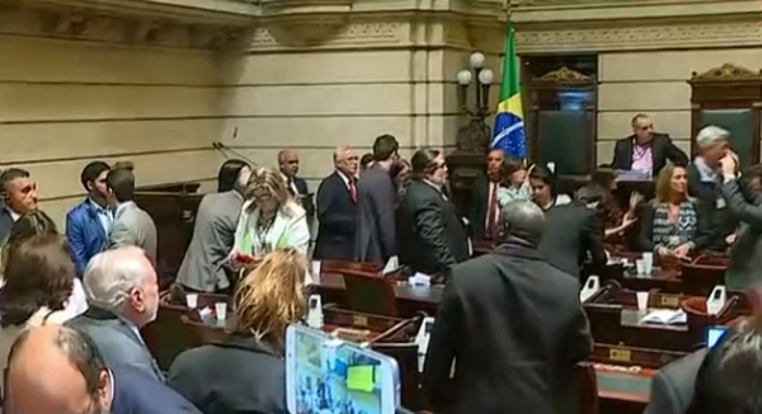 Desde antes do início da sessão, marcada para as 14h, grupos de manifestantes de ambos os lados já se colocavam nos arredores da Câmara do Rio, na Cinelândia. A troca de provocações seguiu nas galerias.