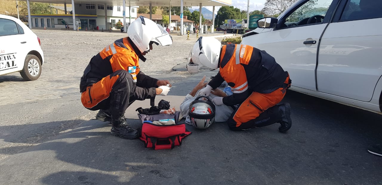 Acidente entre motocicleta e carro na RJ-186 deixa um homem ferido