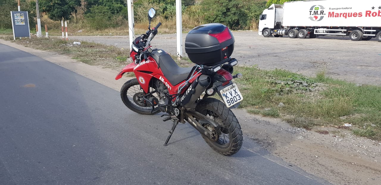 A motocicleta que era conduzida por um homem que também não teve a sua identidade revelada foi lançada ao solo e seu condutor sofreu ferimento em uma das pernas.