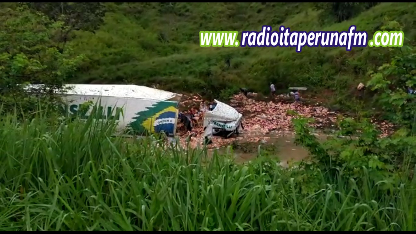 Uma carreta carregada com caixas de leite longa vida saiu da pista e caiu em uma ribanceira de aproximadamente cinco metros, parando próximo a um pequeno açude, na altura do km 61 da BR-356, entre Itaperuna e Italva. O acidente aconteceu nesta sexta-feira (09). No veículo, que ficou bastante avariado, estava um casal que não teve as idades informadas.