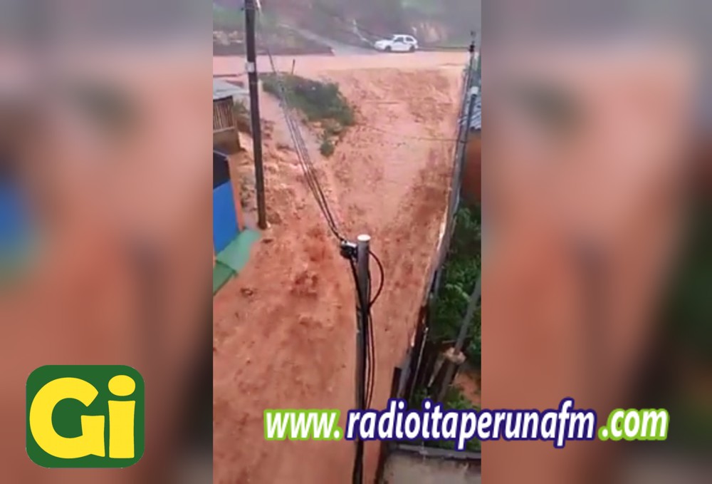 Pelo menos três pessoas de uma mesma família ficaram desalojadas após as fortes chuvas das últimas horas em Porciúncula. De acordo com o coordenador municipal de Defesa Civil Edimaldo Ferreira de Araújo, as áreas mais atingidas foram as comunidades do Morro do Cristo Rei – onde o muro ameaça desabar sobre uma residência, que precisou ser interditada e os moradores removidos – e bairro Operário, onde a enxurrada invadiu inúmeros imóveis. Já no bairro Nossa Senhora Aparecida, as ruas se transformaram em verdadeiras cachoeiras (veja o vídeo abaixo).