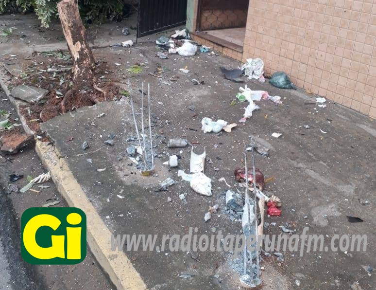 Detritos foram parar na varanda d e uma das residências que somente não foram invadiras por causa das barreiras encontradas pelo veículo antes de parar no meio da rua, completamente destruído.