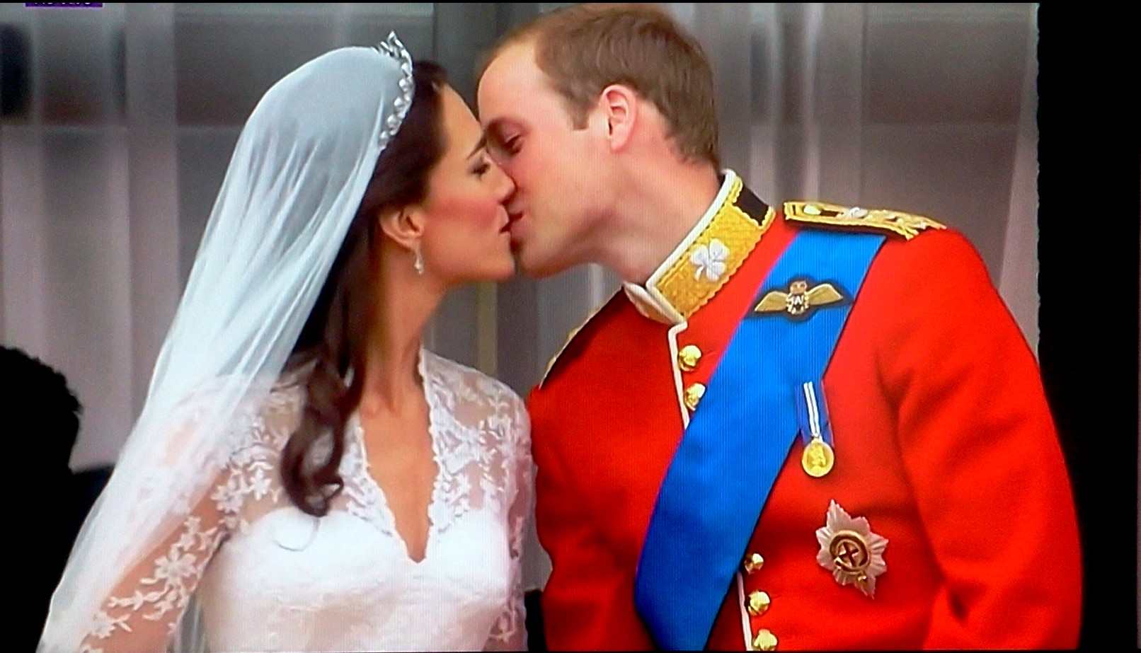 William e Kate Middleton se beijam no alpendre do Palácio de Buckingham