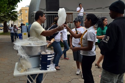Algodão doce e pipoca para quem participava do evento na Praça em Itaperuna
