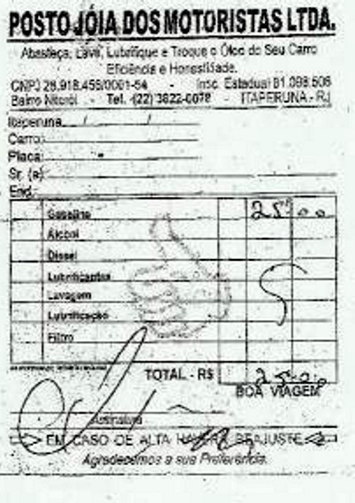 Suposta nota de abastecimento no Posto Jóia para a Carreata de Alfredão