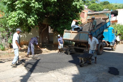 Homens da Prefeitura de Itaperuna na recuperação das ruas